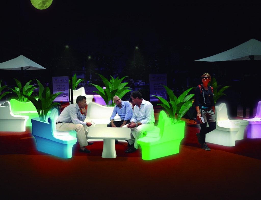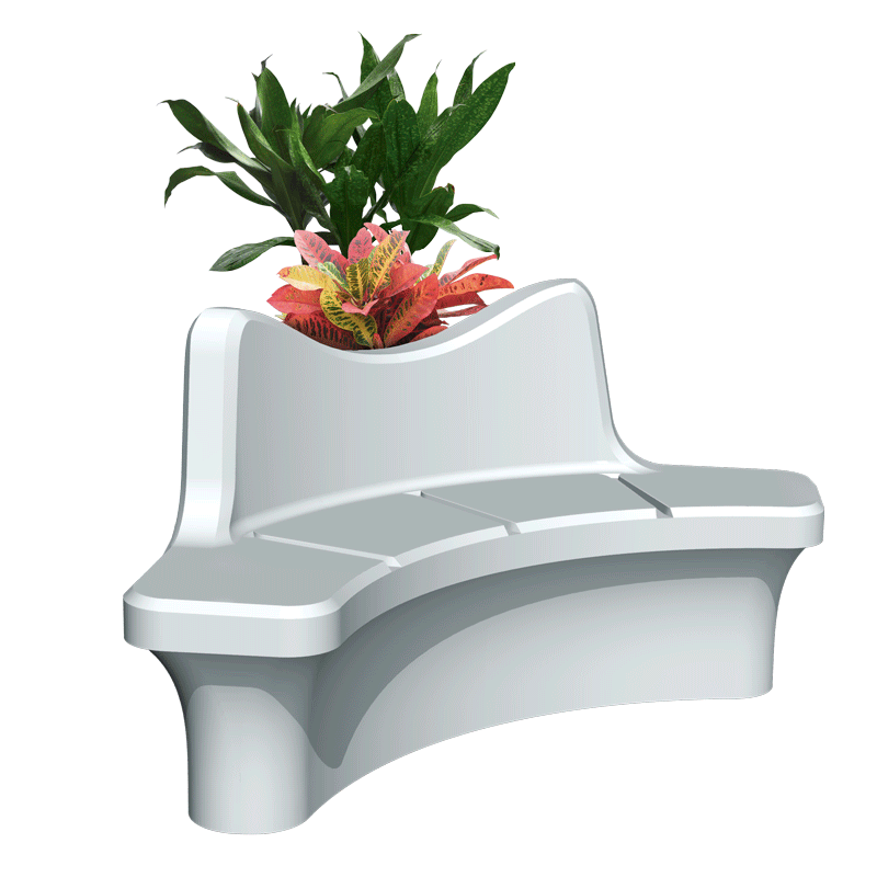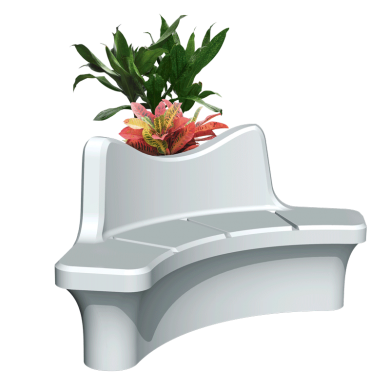 Sistema modular de bancas para colocarse y adornar interiores o exteriores. La forma curva en su diseño permite crear infinidad de combinaciones de acuerdo al espacio disponible. Luz interior (opcional) que añade total elegancia. En dos versiones: con o sin macetero en el respaldo. Fabricadas en plástico de ingeniería. Con protección U.V. y antigraffiti. Con hidromacetero. Combinaciones de luz interior que añade total elegancia (opcional). Sistema de audio interno por medio de Bluetooth (opcional).
