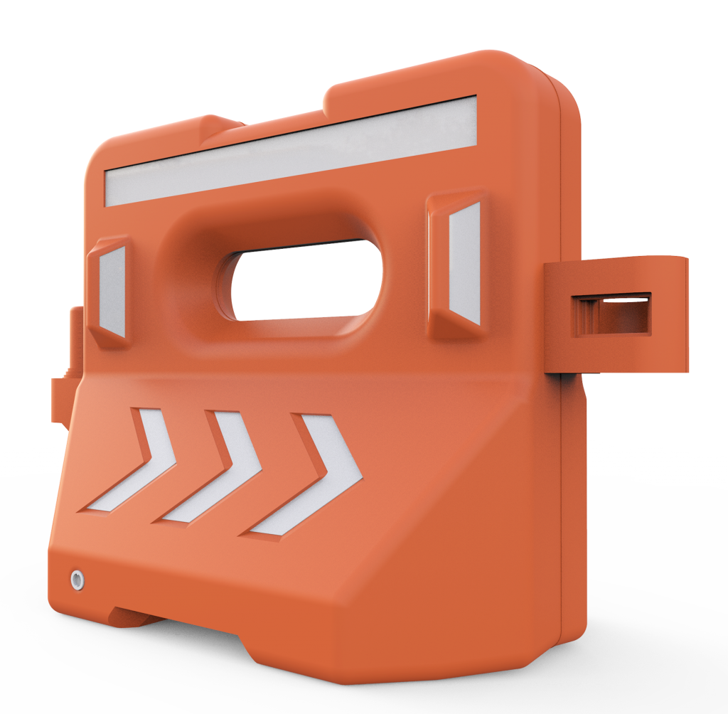 Cuerpo de una pieza fabricada en polietileno de alto peso molecular que asegura su larga vida útil. Liviana, de fácil transporte e instalación. Con puente inferior que permite el paso del agua evitando que las barreras sean arrastradas por las corrientes cuando hay fuertes lluvias. Diseño modular con sistema de enganche (macho-hembra) que permite el perfecto acoplamiento para unir las barreras formando trayectos rectos o curvos. Cuenta con innovadores captafaros de reflejantes. Opcionalmente puede llevar hasta 8 zonas de reflejante: 3 chevrones que indican el sentido de la circulación, 1 franja horizontal a lo largo de la parte superior, 4 superficies reflejantes en los captafaros laterales. Esta barrera cuenta con registro ante el IMPI No. MX/f/2019/002141.