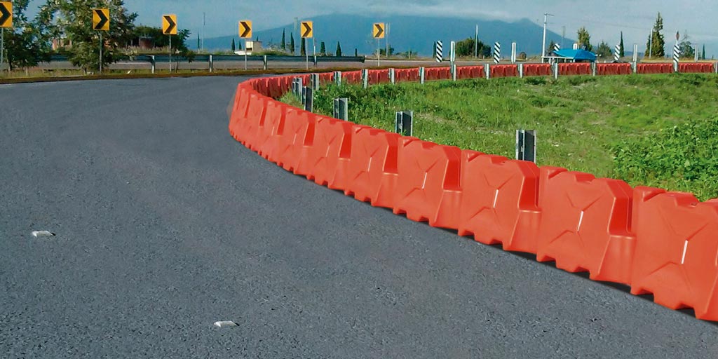 Económica y resistente barrera usada como canalizador o separador de carriles en zonas de obra y carreteras. Con sistema de ensamble para mantenerlas unidas que permite formar curvas, rectas o cuadrados. Rellenable con agua para darle peso e incrementar el nivel de protección. Opción a llevar Hito para aumenta su visibilidad. Fabricada en polietileno de alto peso molecular, el más resistente. Protección con filtro U.V. Soporta lastres diversos.