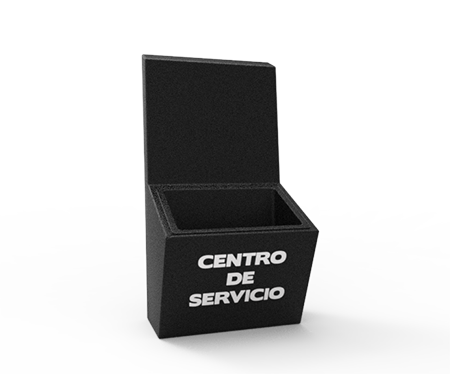 El CENTRO DE SERVICIO esta fabricado en polietileno de media densidad, cuya densidad reúne las más altas condiciones de fluidez, gran resistencia a golpes o roturas.