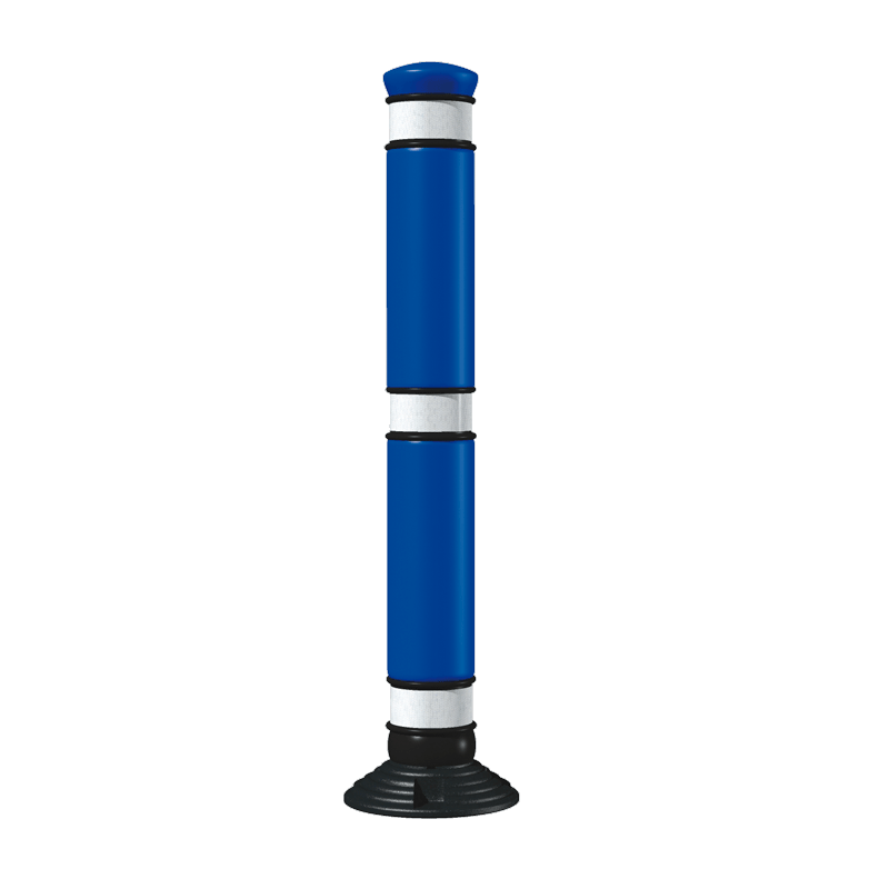 Hito desmontable con sistema de recuperación automática después de ser impactado. Piezas modulares en polietileno de alta densidad con tratamiento para rayos U.V., práctica rosca de ensamble para formar diferentes tamaños o combinaciones de color. Son una buena opción para crear áreas especiales en estacionamientos o aislar zonas específicas, también se emplean para delimitar carriles en vías de doble sentido.