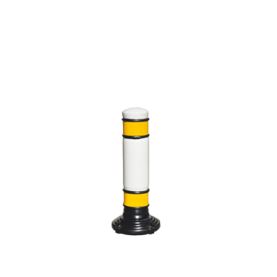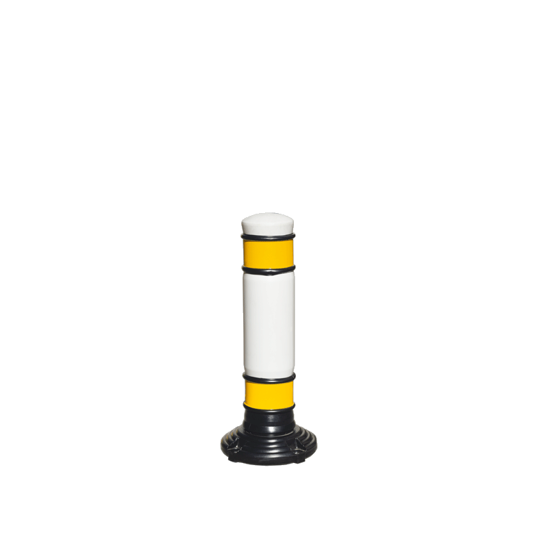 Hito desmontable con sistema de recuperación automática después de ser impactado. Piezas modulares en polietileno de alta densidad con tratamiento contra rayos U.V., práctica rosca de ensamble para formar diferentes tamaños o combinaciones de color. Son una buena opción para crear áreas especiales en estacionamientos o aislar zonas específicas, también se emplean para delimitar carriles en vías de doble sentido.