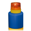 Lámpara con luz roja estroboscópica de advertencia visible hasta una distancia de 500 mts. Base (batery pack) intercambiable con 4 baterias tipo “D” que la hace pesada para mantenarla estable o puede usarse incrustada en el ITO TRIFLEX. Para encender solo es necesario girar la parte superior.