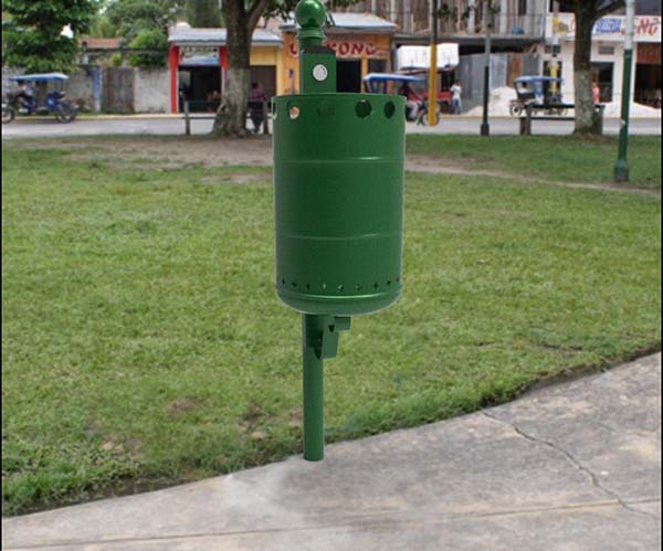 Papelera LIMA 30 fabricada de metal en una sola pieza, resistente a la intemperie.