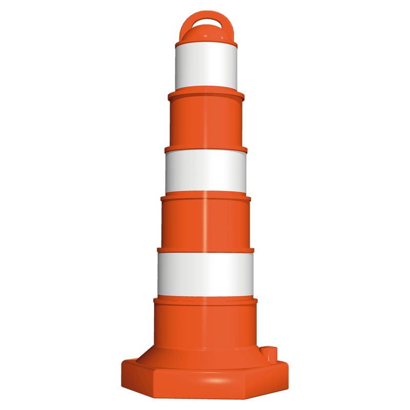 Trafisit de una sola pieza fabricado en polietileno de media densidad con U.V., con base para llenarse con arena con la finalidad de incrementar el peso y la estabilidad. Diseño escalonado con mango para sujeción, totalmente apilables. Resiste perfectamente impactos.