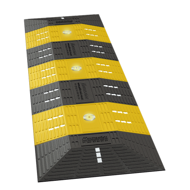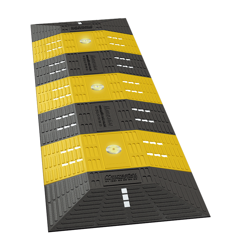 Reductor de velocidad de gran tamaño, recomendado para colocarse en zonas escolares o pasos peatonales, altura adecuada que no rozar la parte baja de los vehículos. Líneas en alto relieve que crean un ligera vibración y reflejantes en cada módulo aumentando su visibilidad. Formado por módulos ensamblables para diferentes largos. Como opción se puede incluir vialetas multielite de 6 a 12 leds que lo iluminan durante la noche. Fabricado en polietileno de media densidad con protección contra rayos U.V. Material 100% reciclado Resistente al paso de cualquier tipo de vehículo.