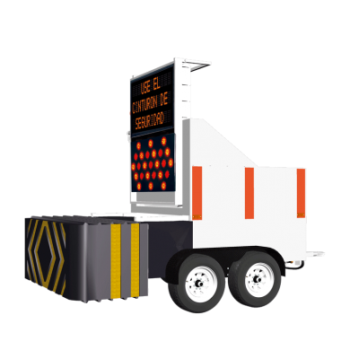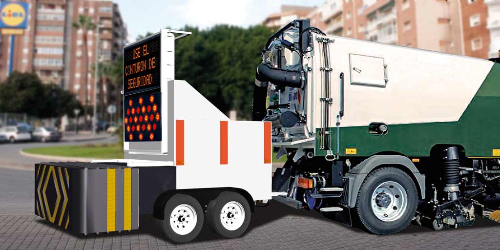 Opción con parachoques fabricado de Vitemflex®, líneas de reflejante y reforzado en el interior. Remolque de seguridad para barredora, camiones de servicio público, grúas, pipas, etc.